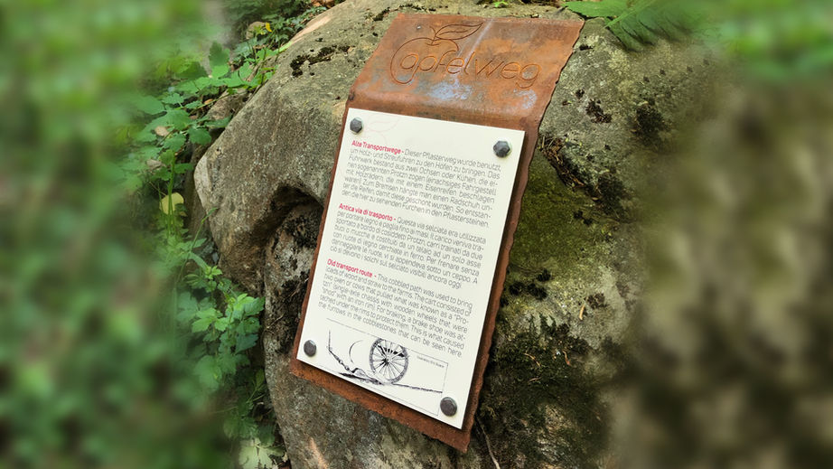 Der Apfelweg in Dorf Tirol ist eine naturnahe und lehrreiche Wanderung für die ganze Familie, die an geschichtlich bedeutsamen Orten vorbeiführt und immer wieder zum Innehalten und Verweilen einlädt. Verschiedene Stationen entlang des Weges erzählen vom Apfelanbau, von den Arbeiten im Jahresverlauf, von neuen und alten Südtiroler Apfelsorten, von Meilensteinen, die in Form einer Zeitleiste Einblick in die Geschichte geben.